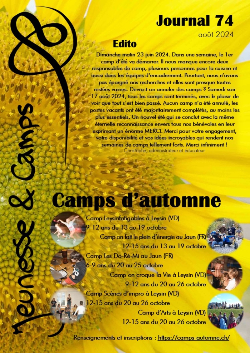 Camps d'automne et annonce des activités de fin d'année avec le week-end Esperluette et les camps de Nouvel An